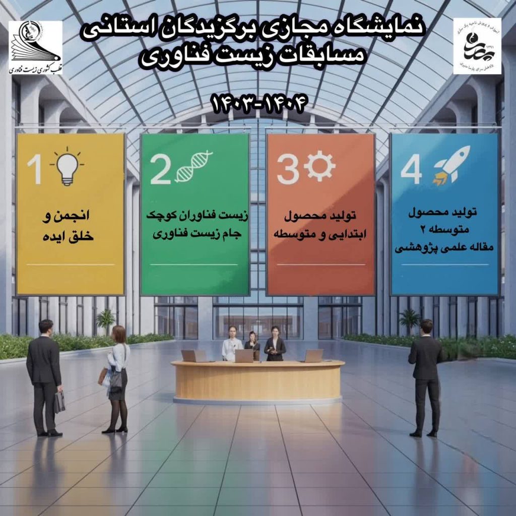 نمایشگاه با طراحی و اجرای پژوهشسرای دانشآموزی زنده یاد پارسا منیری ( قطب زیست فناوری ) و با هدف شناسایی، هدایت و شکوفایی استعدادهای دانشآموزان برگزار شده است.