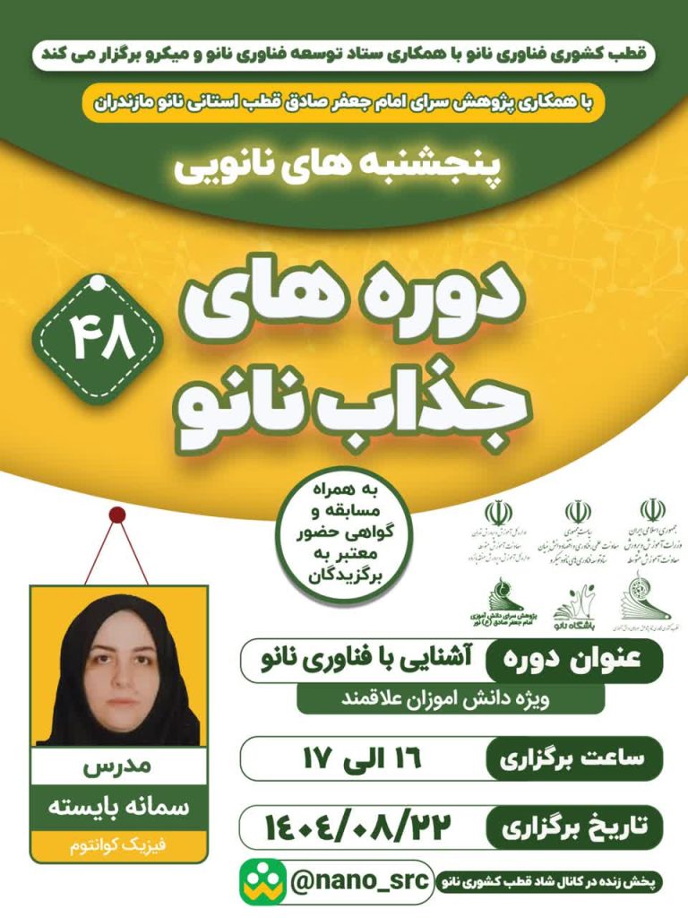 زمان: پنجشنبه ۲۲ آبان ۱۴۰۴ ساعت ۱۶ الی ۱۷